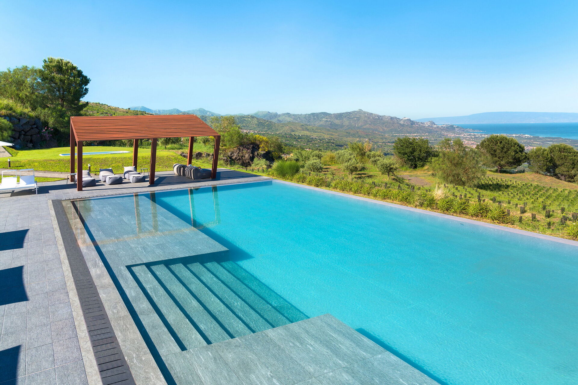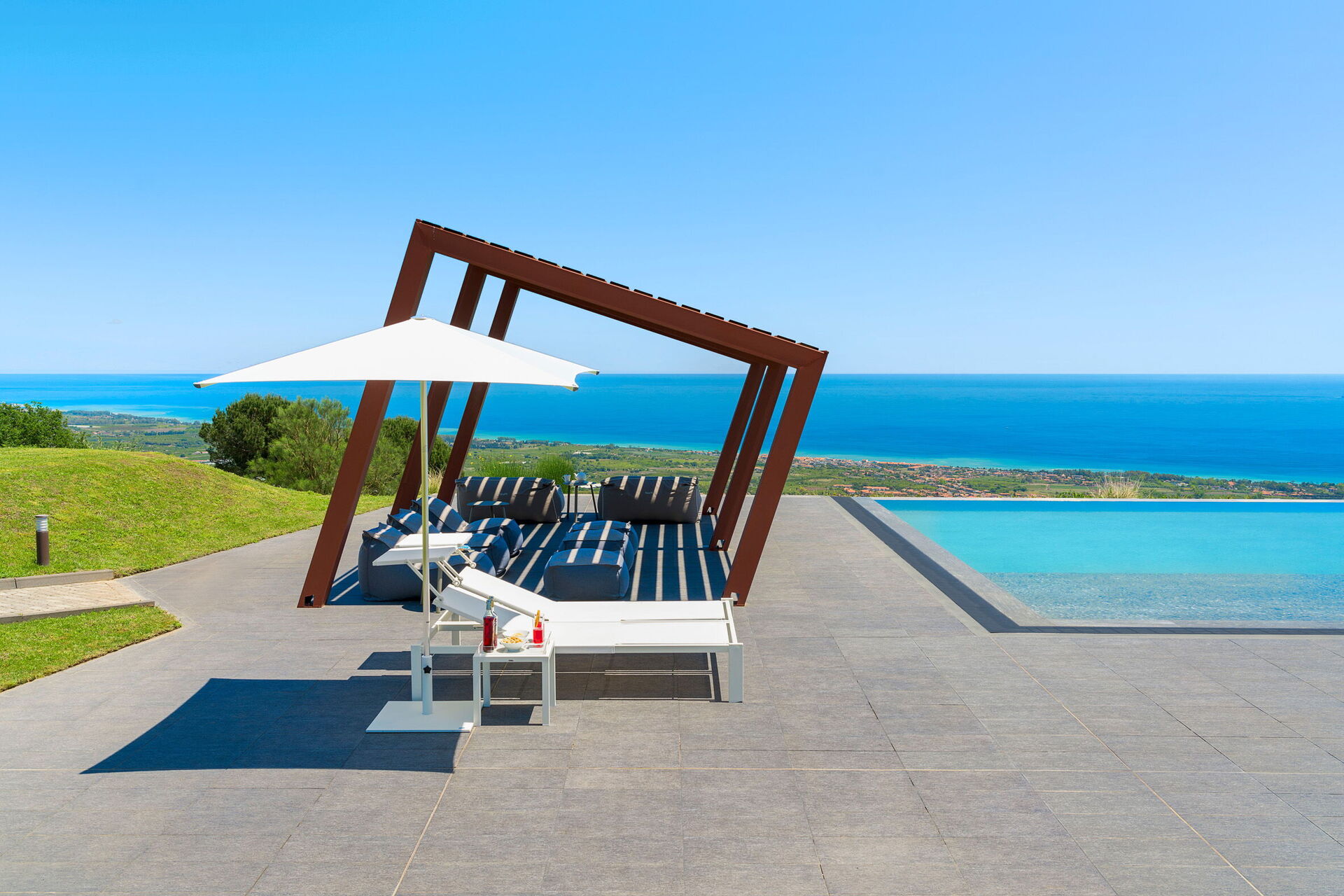 - Privat infinity-pool (20 x 10 m, dybde: 1,20 m, saltvandsrensningssystem)