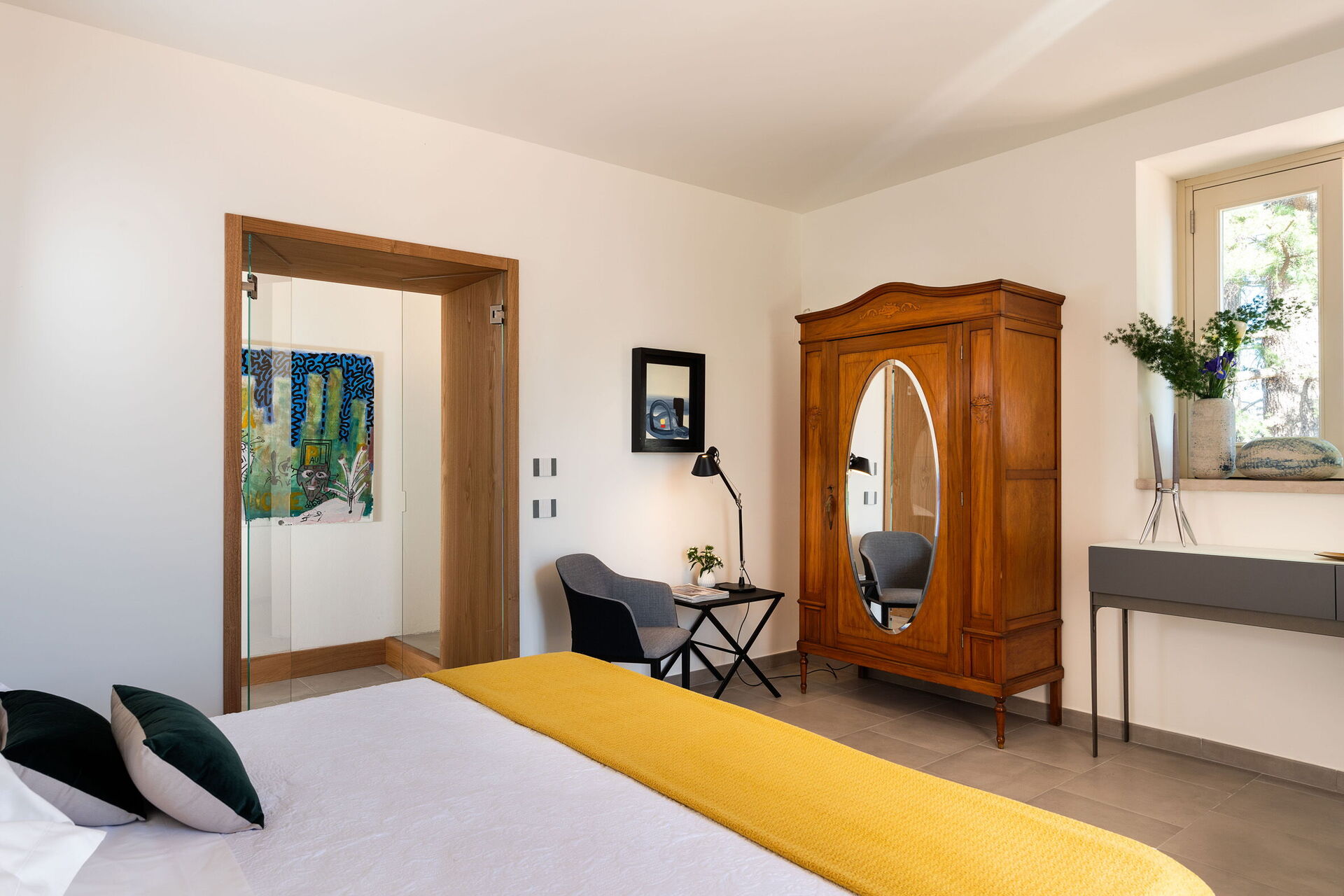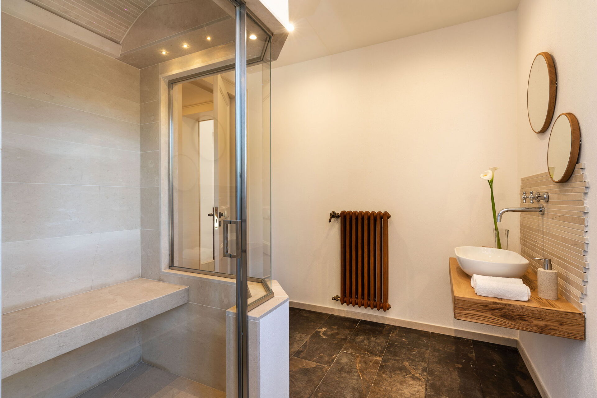 Stue med pejs, spisestue, køkken (kogeplader, ovn, køleskab, fryser, opvaskemaskine, mikroovn, brødrister, espressomaskine, kaffemaskine) med spiseplads, 1 dobbeltværelse (king-size seng, minibar) med pejs, badeværelse med bruser og tyrkisk bad