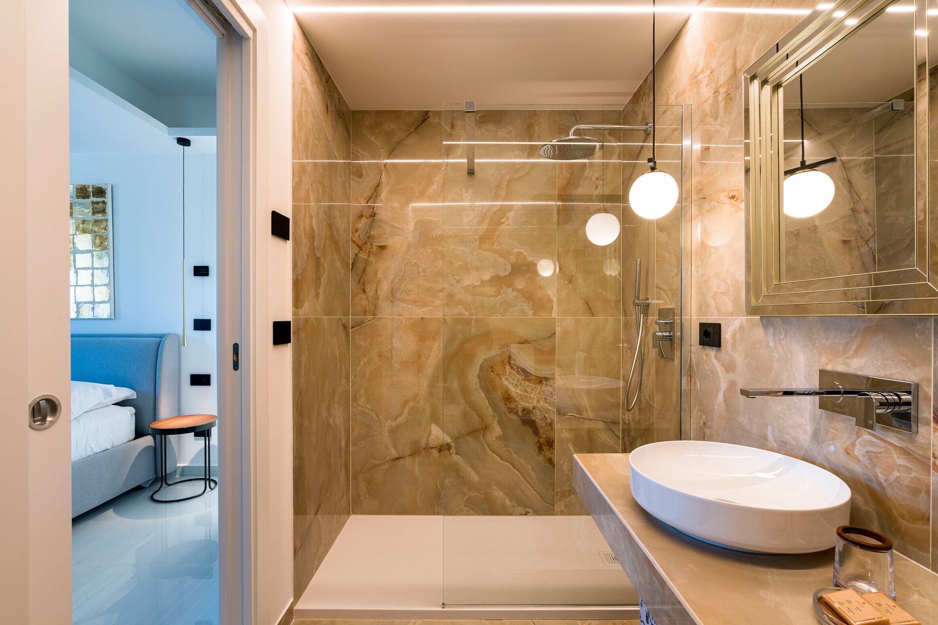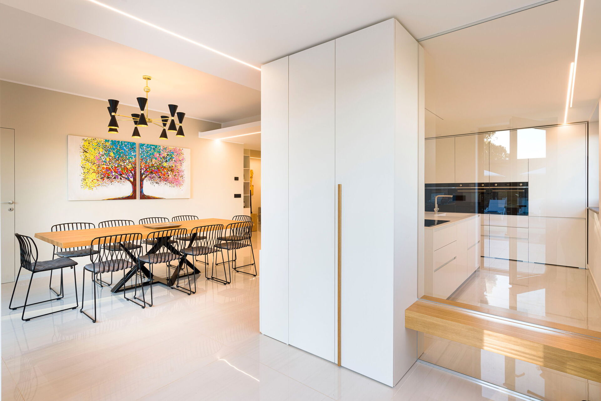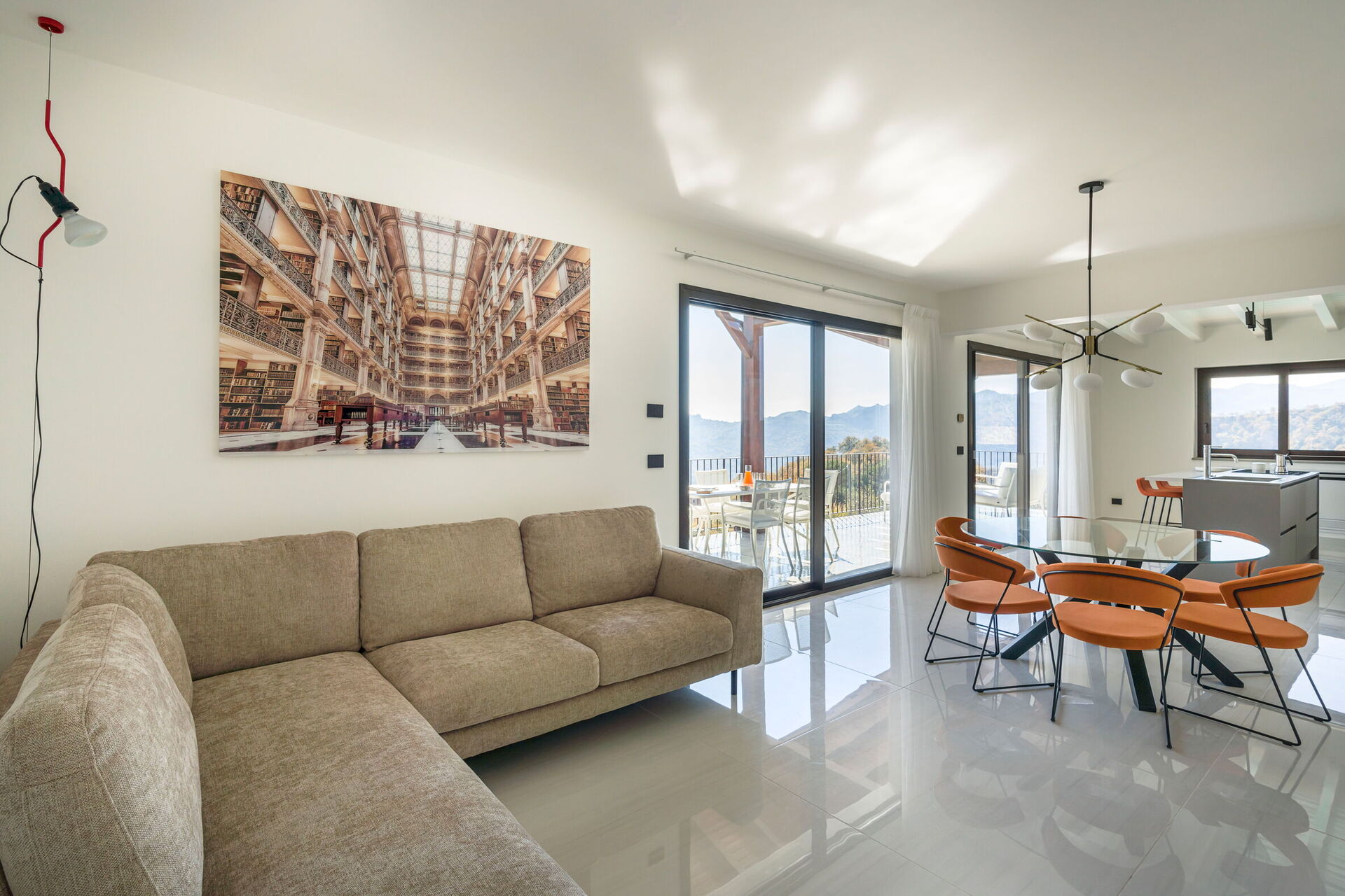 Les terrasses panoramiques extérieures accueillent une grande piscine à l'usage exclusif des hôtes équipée d'un solarium avec chaises longues et transats: idéale pour passer de longues heures sous le soleil à se détendre et à se rafraîchir en compagnie d'amis et de la famille. Les nombreux espaces extérieurs sont parfaits pour manger dehors, profiter d’un apéritif ou d’un dîner les soirs d'été et admirer la splendide vue panoramique dont jouit la maison.