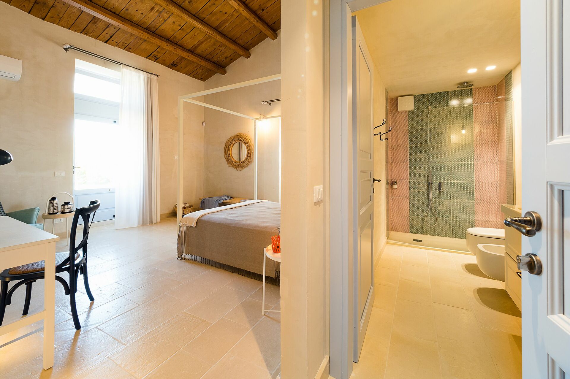 Air Conditioning, Bidet, Shower, Basin, Exit to the patio, Toilet, Double Bed
